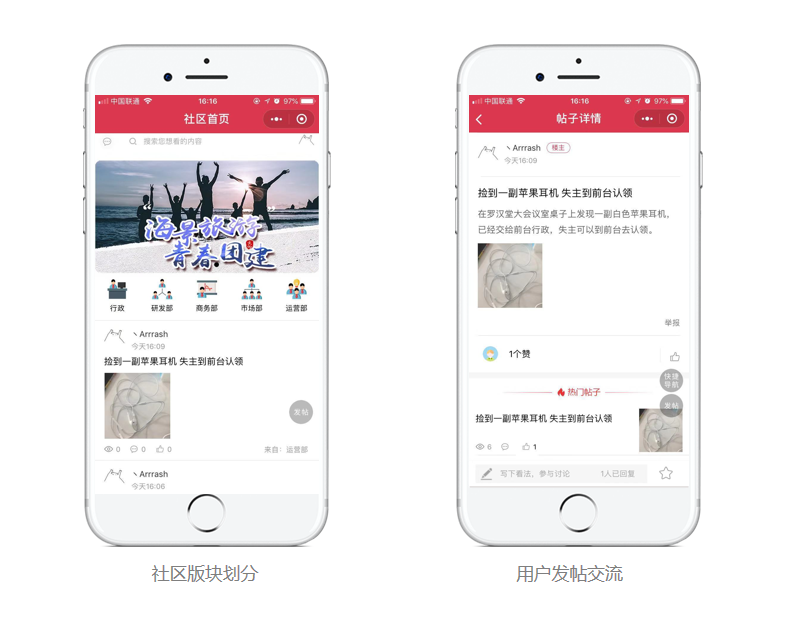 每个版块设立主题或名称,如按部门划分。市场部有专门的社区版块,市场部员工可以在自己版块中交流互动。