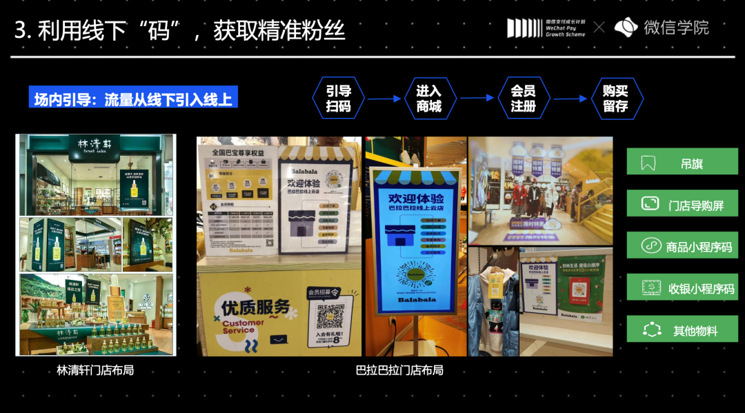 这是线下非常重要的触点。每个导购都可以主动添加门店客户,引导他到商城领取一张会员卡,不仅引流到线上的商城,同时还可以形成比较好的留存和转换。